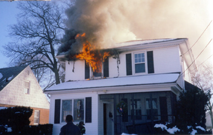 On January 28, 2005 the Lynbrook Fire Department responded to a house fire on Robertson Road. Engine 421 was first on the scene, stretching a hose line to the second floor bedroom. Engine’s 422 and 423 began a second hose line operation while Truck Co. #1 ventilated the fire from the roof. 1st Assistant Chief James McDermott was in charge at the scene.