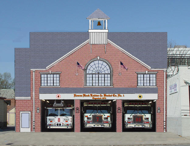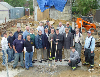 On Saturday, October 7th, 2006 The officers, members and Building Committee members of R.H. L. & No. 1 had their "groundbreaking" ceremony to mark the beginning of the construction of their new facility. Present were Senator Dean Skelos, Assemblyman Bob Barra, Town of Hempstead Councilman Antony Santino, Lynbrook Trustee Bill Hendrick, and Louis Bieler, President of LGB Development, the prime contractor of the project. Construction is expected to take about six months, weather permitting. Truck 1's vintage 1884 firehouse was badly damaged on April 22nd, 2005 and could not be repaired to meet current building codes. The new larger facility (see computer generated rendering below) will be reminiscent of the original historic firehouse. Visit www.rebuildtruck1.org for more information. |