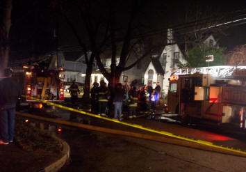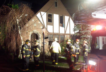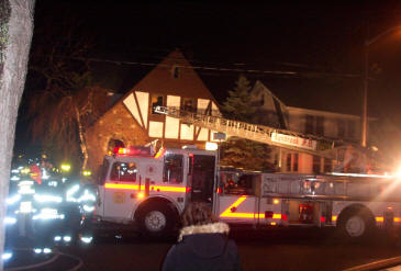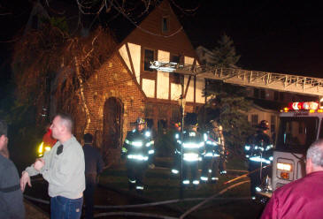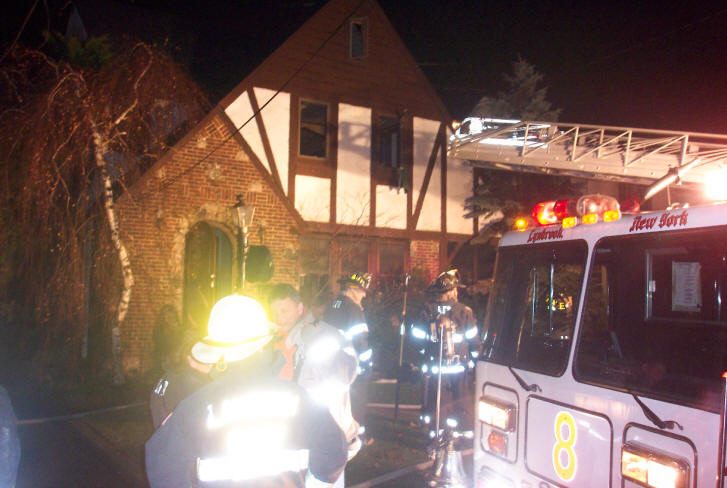 The Lynbrook Fire Department, under the command of Chief James McDermott, was called out shortly after 10:15 PM on New Year's Eve to 74 Buckingham Place, Lynbrook, for a reported house fire. The fire was reported by a passing volunteer firefighter, John Eisert of North Bellmore, who noticed the smoke from nearby Peninsula Blvd. as he passed in his vehicle. The Department's Emergency Medical Company was first on the scene. They pulled up to the house just as Lynbrook Police Officer Joseph Cosenza, North Bellmore Firefighter John Eisert, assisted by Malverne firefighters Bill Pesek and Kevin Morgan, carried the homeowner from his burning house. 1st Assistant Chief Keith Festa also entered the home searching for victims prior to the arrival of fire apparatus. The homeowner was apparently overcome by smoke from the fire and collapsed while trying to escape the blaze.