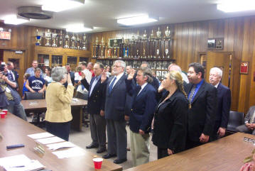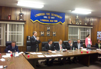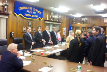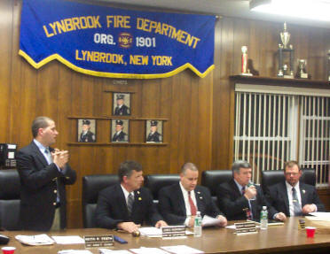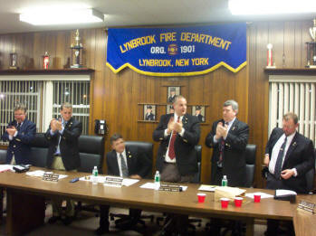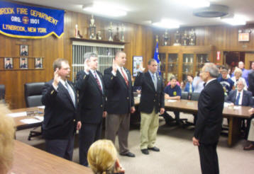 By Ex-Captain Steve Grogan At the Fire Council meeting held on Tuesday evening, April 18, 2006, Mayor Eugene Scarpato of the Village of Lynbrook swore in Keith Festa to the position of Chief Engineer of the Lynbrook Fire Department for the coming year. Festa has spent the last three years as a deputy chief. The mayor also swore into office the newly elected, First Deputy Chief Robert Occhipinti, Second Deputy Chief John O’Reilly, and Third Deputy Chief Kevin Bien. The family of the new Chief and the families of the deputy chiefs were on hand for the swearing in.