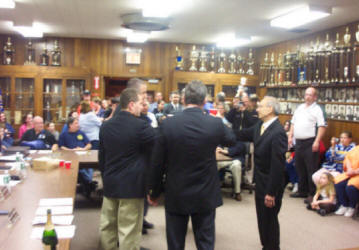 After Chief Festa and his deputies were sworn into office by the mayor, the Chief then swore in the company officers for the coming year. After that, Village Administrator Carol Hansen swore in the Wardens for each of the six companies that make up the Lynbrook Fire Department. A First for the New Chiefs----They Were All Once Juniors For the first time in the over 100 year history of the Lynbrook Fire Department, all four elected fire chiefs are former members of it's junior fire department program. It is believed to be the first time in the volunteer fire service on Long Island as well as in the State of New York, that the recently elected fire chief, Keith Festa, and all three of his deputy chiefs, Robert Occhipinti, John O’Reilly, and Kevin Bien, are former junior firefighters. All four of these men first learned firematics in the Lynbrook Junior Fire Department which was founded in 1979, during the administration of then Fire Chief Bob Forte, uncle of the new third deputy chief. Besides the chiefs, some of the fire companies also have former juniors as line officers. The present chiefs are among the approximately 70 youngsters since 1979 that went on to become Lynbrook volunteers. At present 49 of those that graduated the program are still active firefighters in the Lynbrook Fire Department. |