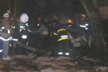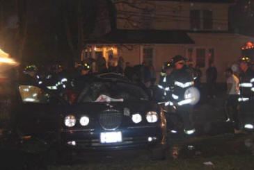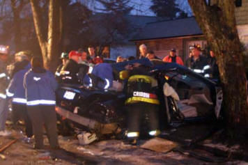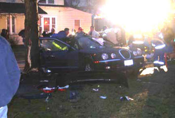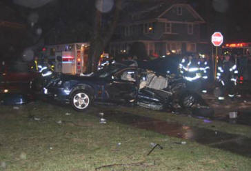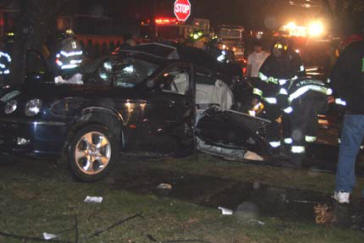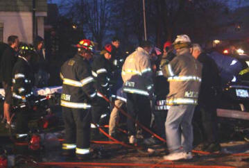 On a rainy Monday evening, the Lynbrook Fire Department was called to the scene of a serious auto accident at the intersection of Christabel and Oak Streets. The March 28, 2005 incident involved two cars. Upon arrival at the scene, Lynbrook Fire Department Chief David Pearsall immediately requested a forthwith response from Medical Company to respond both ambulances and from the Extrication Team. With a strong odor of gasoline, a still alarm was sounded which brought Engines 421 and 423 and Ladder 428 to the scene to handle the potentially hazardous spill. “The jaws of life were needed to gain access to and remove two passengers from the back seat of one of the cars,” explained Chief Pearsall. “The Lynbrook and East Rockaway Fire Departments transported 7 people to area hospitals for medical treatment. Only one passenger sustained serious injuries.” The Lynbrook Police Department investigated this incident to determine a cause for this serious accident occurring on residential side streets. |