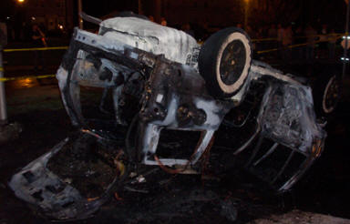 on the scene a wall of flame was emitting from the Jeep, which was lying