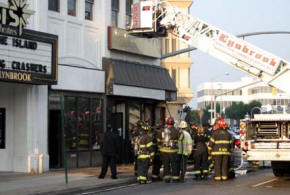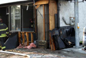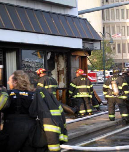 (July 26, 2005) The Lynbrook Fire Department was dispatched to a report of smoke coming from an vacant storefront located at 321 Merrick Road, adjacent to the Lynbrook Movie Theater just after 7pm. The first engine to arrive on scene, Vulcan Chemical and Hose Co. #2 connected to a hydrant and entered the building to search for a fire source. Within minutes, the entire Department was on scene investigating the source of the heavy smoke condition. A signal "10" or working building fire was transmitted by orders of 3rd Assistant Chief John O'Reilly who was in charge at the scene. "The quick response by the members allowed for a fast stop of the fire, located in the front of the store. The quick actions of those working in the building prevented the fire from spreading." The exact cause of the fire is under investigation by the Nassau County Fire Marshal's Office. |
