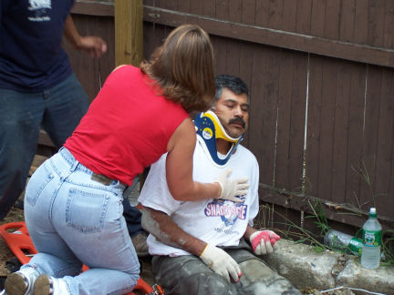 With the large number of injured, Deputy Chief Bien ordered an immediate mutual aid for additional ambulances from the Rockville Centre and East Rockaway Fire Departments. The most seriously injured was a worker who had a piece of rebar through his arm and a head wound. He was transported by Lynbrook fire medics to South Nassau Hospital. The others workers, who had minor injuries, were also transported to area hospitals by the mutual aid ambulances.