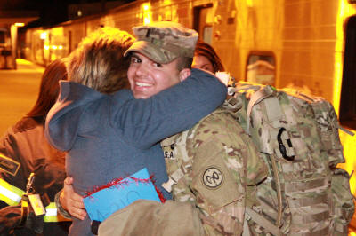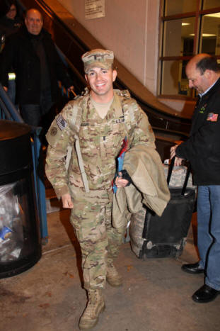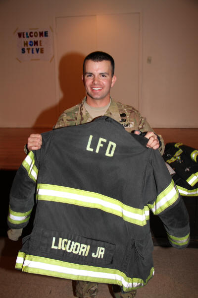 For the past two weeks Steve, upon his return to the states, has been assigned to the Warrior Transition Unit at Fort Dix while his injury will continue to be evaluated and treated. On Friday after his release from the hospital at Dix another soldier drove him to Penn Station where he caught the train home to Lynbrook. While the train made its way east, Steve's family patiently paced the cold train platform as his fellow firefighters and their fire truck, Tally-Ho Engine 3, waited at the curb below. Steve, like his father is a member of Tally-Ho. Steve has been a firefighter since 2005 after first being a junior firefighter. After a fifteen minute wait the train finally came out of the darkness with its bright white headlight and approached the station on the Long Beach branch. Everyone suddenly got excited, and Steve's mom, Liz, couldn't stop moving. The train stopped and the doors opened. First Lieutenant Steven R. Liguori II, in camouflaged fatigues, stepped from the train two cars up dragging his camouflaged colored baggage behind him. Liz, husband Steven, and Steve Jr.'s siblings, Caitlin, Margaret, and Jack, ran to him. Liz was the first to grab and hug him as the rest of the family surrounded, and then everyone hugged. Steve had the biggest smile I have ever seen on his face. Everyone couldn't be happier! When Steve and the family came down from the platform they were met by the Tally-Ho firefighters who blew the siren on the fire truck to welcome him home. The family got into the fire truck and Steve rode the officer's seat back to the firehouse on Horton Avenue where a party was planned. As the fire truck turned from Sunrise Highway onto Horton Avenue a huge American flag hung from below the raised ladder of Lynbrook's Truck Company and a second ladder truck from the Valley Stream Fire Department. As the Tally-Ho fire truck rode slowly under the American flag, Steve looked up at the flag, moving gently in the cold breeze, and said, "Thanks guys," to his fellow firefighters. As the fire truck came down the firehouse street a large crowd of even more family members, friends, neighbors, and firefighters, stood out in front waiting. As Steve stepped out of the fire truck everyone cheered and then each got a chance to hug, kiss, and shake his hand. Everyone went inside the firehouse where Steve was also given back his turnout coat. It was now time to celebrate a soldier-firefighter coming home. (See the Lynbrook Patch story > here) |