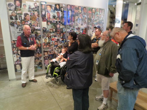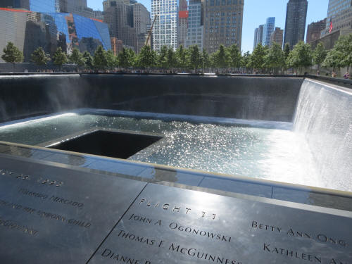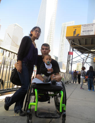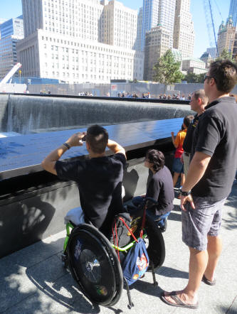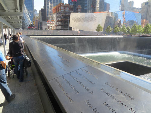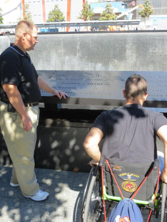 On Monday, October 1, 2012, wounded US Marine Marcus Dandrea, his Marine wife, Victoria, and their son Micah, who had spent the weekend in Lynbrook after being brought up from the Walter Reed National Medical Facility at Bethesda, MD, to attend Lynbrook FD's second annual block party to raise funds for Nassau County Firefighters Operation Wounded Warrior, was taken to Ground Zero by member of LFD's block party committee to see the 9/11 Memorial before their return to Bethesda. Below are the photos from that trip. |