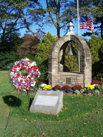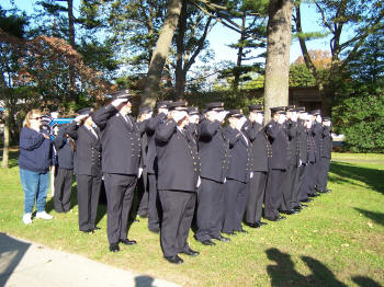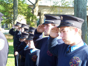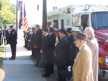 volunteers saluted and the fire bell on the memorial was
