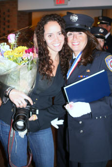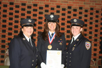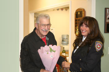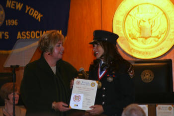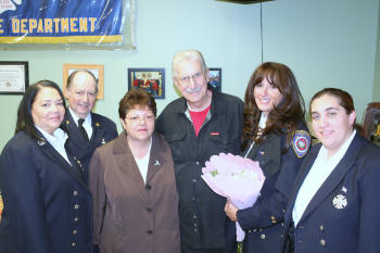 On October 21, 2010, Supervisor Kate Murray and the Town of Hempstead honored Lynbrook Medical Company Firefighter/AEMT Lynn Curtis at their Annual Firematic Awards ceremony held at Town Hall. She was one of 32 firefighters honored this year by the Town. Chief Raymond Burke, along with members of the Emergency Medical Company and other department members were onl hand to watch Firefighter/AEMT Curtis received her award. Firefighter/AEMT Curtis was honored for two saves, the first on November 2, 2009, at about 1:25 PM, when she responded to an auto accident and overturn on Atlantic Avenue, near Stauderman Avenue. The driver of the overturned vehicle, a retired FDNY fire marshal, was thrown through the window of his SUV and onto the roadway. He sustained severe head trauma and was bleeding profusely from his head and face. Firefighter/AEMT Curtis quickly controlled the bleeding, saving the man from bleeding to death. She then immobilized the patient and with the aid of other members of the Medical Company the man was transported to the hospital. The driver's daughter sent a letter to the Department saying, "I am compelled to share my gratitude and thanks to this hero and all of the dedicated professionals who serve alongside her." The second call that Firefighter Curtis was honored for was saving the life of a man who suffered a heart attack on May 10, 2010. On that day, Firefighter/AEMT Curtis responded to a reported cardiac arrest on Hendrickson Avenue. When she arrived, Lynbrook police officers were performing CPR on a 67 year old male but the man had no heartbeat. Firefighter Curtis immediately established an airway and an IV. She then administered defibrillation two times before getting a heart beat back. When the man's heart stopped again she defibrillated again and a normal heart rate was established. The man fully recovered. After the awards ceremony at Town Hall, everyone gathered back at Medical Company quarters.. The man who suffered the heart attack and was saved by Firefighter/AEMT Curtis came by and surprised her with flowers. |