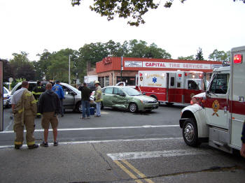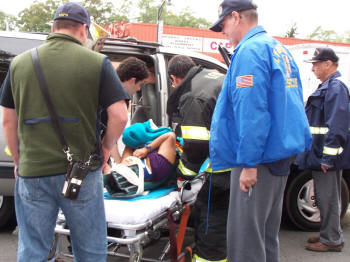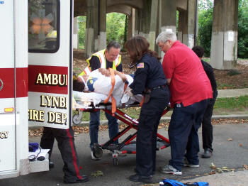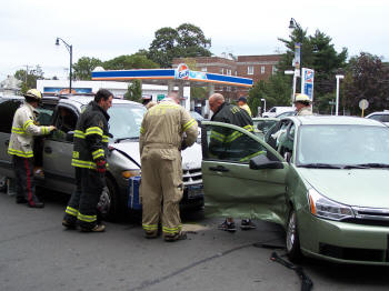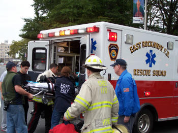 On Friday, October 9, 2009, at about 9:40 AM, and two and one half hours after the first Sunrise Highway accident that morning, the Lynbrook Fire Department’s Emergency Medical Company and the department’s Extrication Team, responded this time to a two car accident at the intersection of Sunrise Highway and Vincent Avenue. Firefighters under the command of Second Deputy Chief Mike Hynes found multiple aided upon arrival on the scene. Medical Company personnel stabilized the injured and took two of the injured along with two children and a baby to the hospital, while East Rockaway’s Rescue Squad who responded on a mutual aid assisted at the scene and transported another of the aided. |