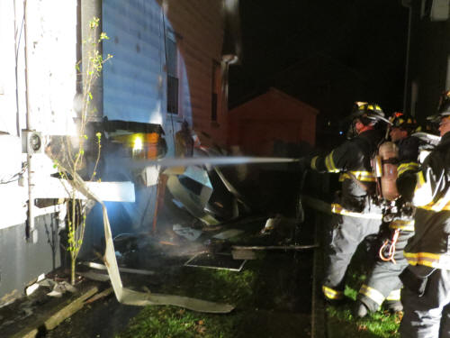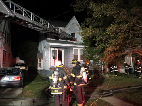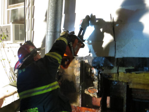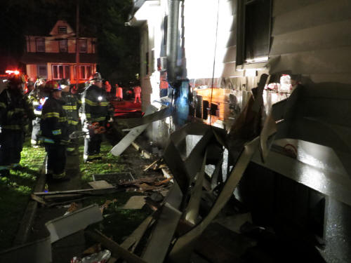 For the third day in a row, firefighters fought a working house fire in Lynbrook. This was after the volunteers performed stand-by duty for Hurricane Sandy and who answered over 110 fire calls that week from Lynbrook residents while also providing needed firefighting assistance to flooded and battered areas in Island Park and Long Beach. The third major fire occurred on Saturday evening, November 3rd, shortly after 11:30 PM, when Lynbrook firefighters were called out for reported "fireplace smoke inside a house." However, when they arrived at the home at 8 Hazel Place heavy black smoke was pouring from the home and the fire in the fireplace was also in the walls of the two story home. The homeowners fled the house. First Deputy Chief Edward Hynes was first on the scene and transmitted a Signal 10 for a working fire at the house. Engine Company 1 and Tally-Ho Engine 3 arrived on the scene and Tally-Ho dropped two hose lines at the hydrant on the corner of Broadway and drove into Hazel, a dead-end street. Two attack hose lines were taken into the house with Tally-Ho going to the second floor where the fire was quickly spreading up to the roof. The second line, manned by Engine Company, went to the first floor fireplace area to fight the fire in the walls around the fireplace. The fire was stopped in the second floor wall after the wall and ceiling was opened up and the fire extinguished before it spread to the attic area and roof. At the same time Tally-Ho firefighters were fighting the fire on the second floor and Engine Company firefighters were on the first floor trying to get behind the brick floor to ceiling fireplace to get at the fire in the wall, members of Truck Company, using saws, went outside and cut through the siding of the home to get behind the bricks and into the burning wall framing. Besides the fire found in the walls fire was also found coming out of an electrical socket next to the fireplace. The owner of the home told firefighters that the fireplace had been lit that evening to warm up the house. This was also allegedly the first time the fireplace had been used in a very long time. Fire Chief Anthony DeCarlo coordinated the firefighting efforts and he said it could not be determined if the fire was caused by the fireplace due to what appeared to be old and crumbling mortar and which had not been used lately, or whether the power coming back on from Hurricane Sandy had anything to do with the cause of the fire as the electric enters the house through the wall behind the fireplace. Because the fire was also found in the electric socket it appeared the fire caused a short circuit in the transformer opposite the home which then plunged the block back into darkness. LIPA arrived and turned the rest of the block back on. Although the fire was not considered suspicious, Chief DeCarlo asked for a routine Fire Marshal investigation based upon their availability. Damage was placed at $100,000 and there were no injuries. Besides the three major fires the Lynbrook Fire Department fought three nights in a row, and the 110 calls answered during and after the hurricane, Lynbrook firefighters also responded to calls from beach community firefighters for help. On Wednesday, October 31, Engine Company and one of Truck Company's ladders, as well as an ambulance from the Emergency Medical Company, went knocking door to door in Island Park and conducted safety checks on all the homes and its occupants. On Thursday, November 1, Truck Company spent 24 hours responding to fire calls in Long Beach. Most of the calls were for gas leaks. Then finally on Friday, November 2, Tally-Ho Company spent the afternoon in Island Park answering fire calls. |