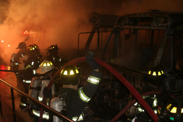 dispatched by FIRECOM to a reported bus fire behind the Davison