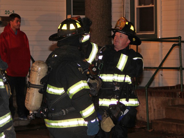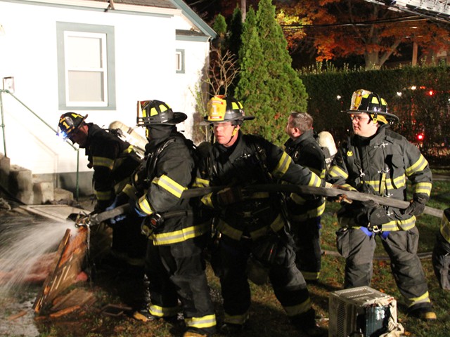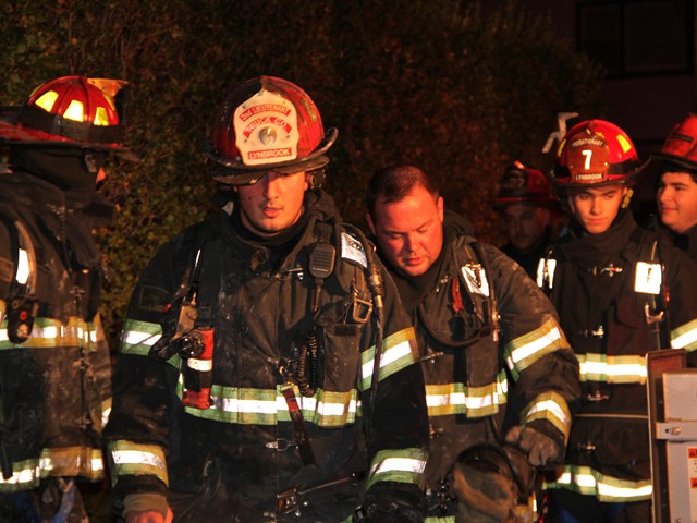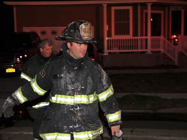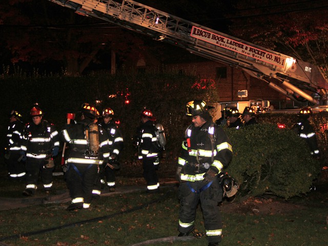 Lynbrook firefighters made a quick stop of a house fire on Friday evening, November 7, 2014 at 20 St. James Place between Forest and Earle Avenues in Lynbrook. The Lynbrook Fire Department, under the command of Chief Michael Anderson, was dispatched to the scene at 9:47 PM where a large amount of fire could be seen blowing out an attic window on the third floor. Truck Company from their Earle Avenue firehouse was first on the scene and immediately conducted a search of the dwelling to make sure all tenants were safely out of the house. Engine Company arrived shortly thereafter and took the hydrant at Earle and St James and stretched an attack line all the way up to the attic where a bed and other room contents were ablaze. Vulcan Company from Denton Avenue also arrived and stretched a second line. Truck Company also laddered the house with both their trucks. Although the fire was quickly consuming the bedroom, the firefighters, working in a very tight and confining staircase up into the attic, were able to finally extinguish the fire. The fire was brought under control in about 20 minutes and totally extinguished in about an hour. Firefighters were at the scene for about two hours. One occupant of the house, a pregnant women, who complained of having difficulty breathing was transported to South Nassau Hospital by the department's Emergency Medical Company. A second tenant was assisted by the Red Cross who also came to the scene. No firefighters were injured fighting the fire. During the height of the fire, Chief Anderson called for mutual aid from East Rockaway, who sent a "Fast Team," while Rockville Centre sent a ladder, Malverne sent an engine, and Lakeview sent an ambulance, to assist. During Truck Company's original search operation for occupants possibly still in the house they found numerous separate rooms inside. The Chief then called the Village of Lynbrook's Building Department to investigate for possible illegal occupancies. The Building Department responded to the scene to investigate for village law violations. Illegal apartments in homes are very dangerous to firefighters. Firefighters have died in fires trapped behind illegal walls separating multiple rooms built inside homes now housing multiple tenants. Although the fire was not considered suspicious, the Chief also requested that the Nassau County Fire Marshal's Office conduct a routine investigation of the fire. On Christmas Day 2001, Lynbrook firefighters fought a similar fire on the second floor of the same house. |