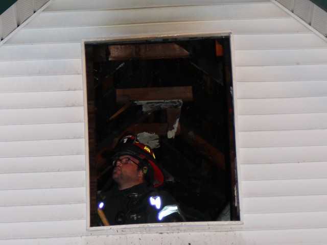 Firefighters Battle Attic Fire Story by Steve Grogan; Photos by Brian Grogan