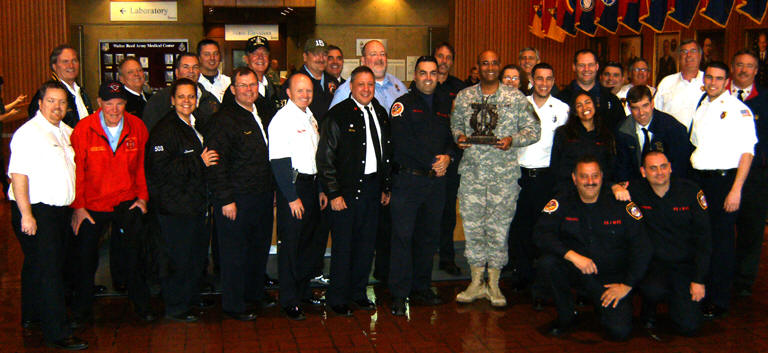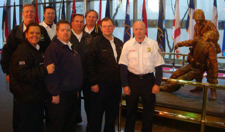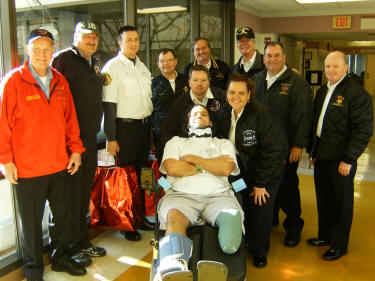 On December 3, 2010, thirty members of the Nassau County Firefighters-Operation Wounded Warrior program traveled to Walter Reed Hospital in Washington, D.C., and the National Naval Medical Center in Bethesda, MD, to present Christmas presents to hospitalized wounded warriors. Eight members of the Lynbrook Fire Department were part of this year's group that made the trip. They included: Third Deputy Chief Ed Hynes, and Firefighters Chris Hynes and Vincent McManus, representing Engine Company; Ex-Chief Richard Neidecker and Captain James Eisenhauer, representing Hose Company; Ex-Chief Kevin Bien, representing Truck Company; Ex-Captain Steve Grogan, representing Tally-Ho; and Ex-Captain Laura Gullicksen, representing the Medical Company. Additionally, First Lieutenant James Tucker, representing Vulcan Company, and who is also a Navy Corpsman, left the day before and traveled with another group of volunteer firefighters to Camp LeJeune. The Lynbrook Washington contingent left at 5 AM and were part of a nine vehicle caravan, including a U-Haul truck that carried the presents. The caravan of fire department vehicles has been dubbed the "Long Red Line." The group presented 107 Christmas gift bags containing numerous presents (DVD player, NCFD fleece, blankets, socks, toiletries, Christmas cards, letters and notes) to soldiers receiving treatment at the two hospitals treating these wounded warriors.