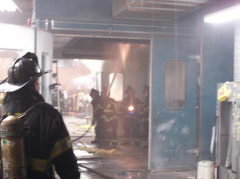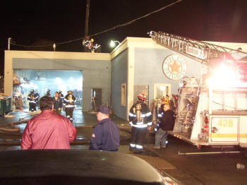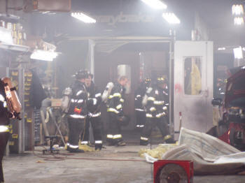 On February 5, 2008, at about 7:15 PM, the Lynbrook Fire Department, under the command of Chief Robert Occhipinti, responded to a fire at Five Star Collision on Earle Avenue just off Sunrise Highway. The first arriving units found a heavy smoke condition coming from the roof of the building which still had employees working at the time. A fire was found in the ceiling air ducts of the paint room which exhausts out of the roof. Vulcan Company took the hydrant on the corner and stretched an attack line and a backup line to the side garage door area. Truck Company, located on the same block, was first in and set up its ladder to the roof area. All the other fire companies stood-by. The fire was extinguished in a matter of minutes with Vulcan wetting down the exhaust ducts. The fire department took up shortly after 8:15 PM. There were no injuries. |