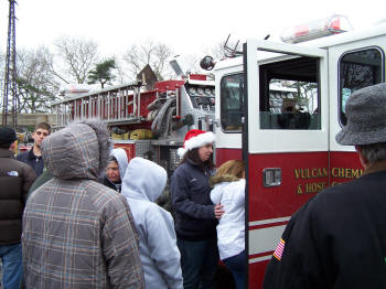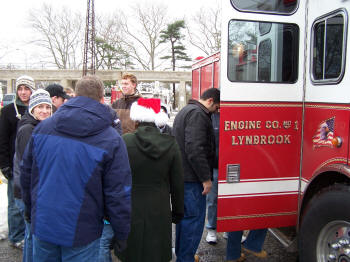 On a chilly and overcast Saturday afternoon, December 20, 2008, the volunteers of the Lynbrook Fire Department, under the command of Chief John O'Reilly, held their annual Christmas fire truck rides in the downtown area of the village. After the children rode the fire trucks they got a chance to sit on Santa's lap inside Truck Company's firehouse where coffee and hot chocolate was also served. The Lynbrook Fire Department has been holding this annual event for nearly 50 years. The chairman for the event was Ex-Captain Ed Hynes of Engine Company |