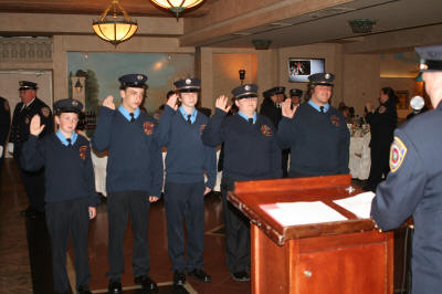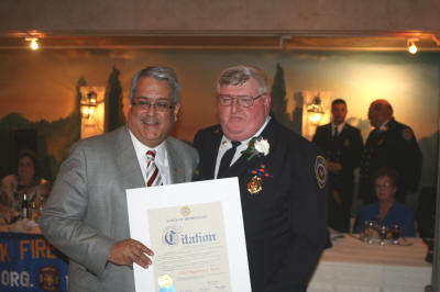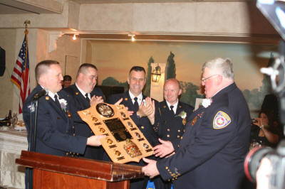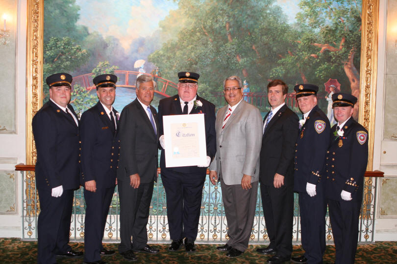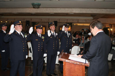 Annual Installation Dinner Story & photos by Ex Captain Steven Grogan On Friday, May 6, 2011, the Lynbrook Fire Department held its Annual Installation and Dinner Dance at the Jericho Terrace in Mineola. Outgoing Chief Raymond Burke was honored for his three years as an assistant chief and the past year as Chief of Department. Also, Lynbrook Deputy Mayor Alan Beach, standing in for Mayor William Hendrick, swore in the new Chief Engineer Michael Hynes of Engine Company, as well as First Assistant Chief Anthony DeCarlo of Tally-Ho, Second Assistant Chief Edward Hynes of Engine Company, and Third Assistant Chief Michael Anderson. Chief Hynes then swore in the officers of each of the five fire companies and the Medical Company. He also swore in the officers of the Lynbrook Junior fire Department, and the Ladies Auxiliary. Also at the dinner, Ex-Chief Tom Ryan, of Tally-Ho, was honored and made an Honorary Commissioner, and Ex-Captain Edward Murphy of Vulcan Company, was honored and made an Honorary Chief for their 50 years of volunteer service. Additionally, Ex-Captain Richard Straub was named Lynbrook Firefighter of the Year. Also, Engine Company was award the Chief's Award for last year's parade season by Ex-Chief Burke. |