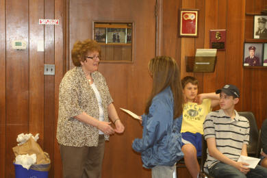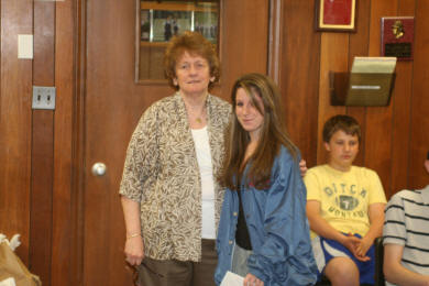 In the above photo, Kathy Festa, center, presents the award to Anna Donnely who is graduating Lynbrook High School in June. Donnely has been a member of the juniors for five years. Joining in the presentation with the Festa Family is Lynbrook Fire Chief Michael Hynes, extreme left. |