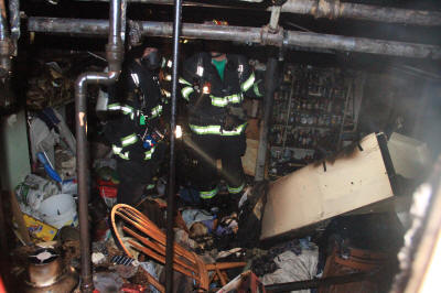 A quick attack by Lynbrook firefighters brought the fire under control in about 30 minutes but they were there for over three hours overhauling the fire damaged home which contained much debris which had originally hampered firefighter's movements and efforts to contain the swift moving fire. The Lynbrook Fire Department, under the command of Chief Michael Hynes, was dispatched at 3:01 AM for a report of "smoke coming from the house." Lynbrook police officers were first on the scene and found the homeowners had escaped their burning house. Chief Hynes, upon his arrival, broadcast a Signal 10 to all units for a working fire at that location. Tally-Ho Company was first on the scene and took the hydrant on the corner. They stretched a hose line as Engine Company also arrived. Tally-Ho's line went to the side door which was the closest to the basement staircase. Two firefighters who had originally gone down into the basement to locate the fire while the hose line was being stretched escaped quickly as the fast moving fire rolled along the basement ceiling and up the staircase behind them. With Tally-Ho attacking the fire in the basement staircase a second line was stretched from Tally-Ho by Hose Company members and they backed up the basement hose line. Two more lines were then stretched from Engine Company. One line, manned by Engine Company members, went into the front door. The second line, manned by Vulcan Company members, covered the second floor. As those hose lines were being stretched, Truck Company put their ladder up to the second floor and put ground ladders around the house. The command post was put into operation while its towers were used to light up the scene. The Emergency Medical Company was on hand to assist the injured. The homeowners were looked at by medical personnel but they refused medical aid. After firefighters first extinguished the fire in the staircase they moved down into the burning basement. The fire was burning along the ceiling rafters and extended from one end to the other. Although firefighters had a difficult time moving the hose line around due to the limited space and debris in the basement the fire was finally brought under control. While the firefighters were attacking the basement fire other firefighters were making their way on the first floor where the dining room wall was on fire. The fire had come up from the basement behind the floor radiator. Due to the heavy smoke coming up from the basement they could not see where they were going on the first floor. The lead firefighter, slowly walking and feeling his way in the dark from the kitchen into the dining room, felt the floor give way under his feet and immediately backed up before it collapsed under his weight. The intense fire burning in the basement ceiling had already burned through the first floor rafters. As the firefighter stepped back into the kitchen the flame came up through the sinking floor. Had the firefighter continued walking he would have fallen into the fire below. Firefighters were able to get into the first floor dining room through the front living room and extinguish the spreading fire in the wall before it moved up to the second floor. Truck Company members assisted the firefighters on the hose lines by taking out the closed windows to vent the extreme heat and smoke. One firefighter was injured with a laceration through his gloved hand. He was transported to South Nassau Hospital by an ambulance from the Valley Stream Fire Department who responded on a mutual aid. Additionally, Rockville Centre sent a ladder to the scene and an engine to stand-by to cover other Lynbrook alarms. East Rockaway also stood by with a ladder and sent an ambulance to the scene. Lakeview sent an ambulance to the scene. Firefighters were at the house for over three hours due to the extensive amount of debris in the basement which had to be overhauled to make sure the fire was extinguished. Chief Hynes, who commended the efforts of the volunteers said, "Their quick attack of the fast spreading fire in the basement saved the house." He also said that had the wife not awoken to the sound of something, as she said, "popping" downstairs, they would have never survived the intense fire engulfing their home. Chief Hynes requested the Nassau County Fire Marshal's Office to the scene to investigate the cause of the fire. An investigator determined that the fire was most likely caused by an electric short possibly from a faulty extension cord in the basement. Fire damaged was placed at approximately $250,000. The house next door to 104 Bixley Heath is believed to be the house where five members of the Levy family perished in a similar early morning fire 44 years ago. A photo taken by Lynbrook firefighter and photographer John Cribbin of firefighter Tom Ryan performing CPR on one of the fire victims appeared on the front page of the New York Daily News the following day in 1968. The centerfold of that newspaper carried additional photos of that fire. |