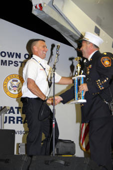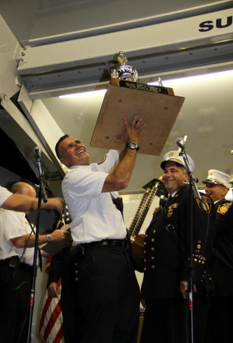 5th Consecutive Win in 4th Battalion Parade By Ex-Captain Steve Grogan; Photos by Lt. Brian Grogan For an unprecedented 5th year in a row the Lynbrook Fire Department are the champs of the Fourth Battalion after winning the annual parade which was held on June 23rd in East Rockaway. Lynbrook's Juniors also won first place and their band took second place. Rockville Centre finished second in the parade and East Rockaway finished third. The Fourth Battalion consists of the East Rockaway, Lakeview, Lynbrook, Malverne, and Rockville Centre Fire Departments. Rumor has it that a gentlemen's wager was made between Chief DeCarlo and Rockville Centre's Chief John Busching on the outcome of the parade. Chief Busching will now have to wear a dress and be Chief DeCarlo's date at the chief's dinner next year.