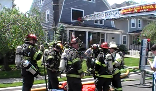 Mutual Aid to RVC Story & photos by Ex Captain Steven Grogan On May 29, 2012, at about 11 AM, the Lynbrook Fire Department was called on a mutual aid to assist the Rockville Centre Fire Department with a Signal 10 house fire at 23 Lincoln Ct. off Lincoln Avenue. Hose Company and Truck Company responded under the command of First Assistant Chief Edward Hynes. RVCFD made a quick stop and confined the fire to the kitchen and wall area. Lynbrook firefighters were not needed and stood-by. Besides Lynbrook, Oceanside, and East Rockaway Fire Departments also sent their ladders to the scene. RVCFD had called the mutual aid shortly after a blackout occurred in their village and fire doors could not be electrically opened. They were also responding to other calls during the morning blackout. Their were not injuries and Lynbrook was on the scene for about an hour. |