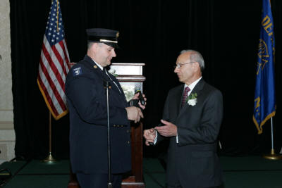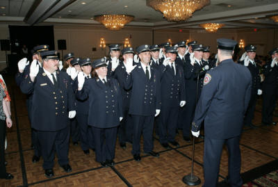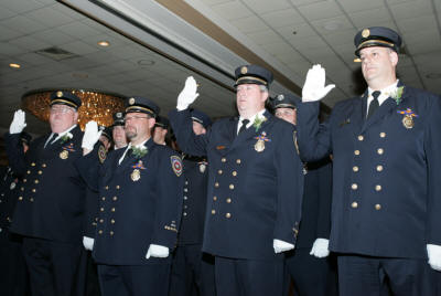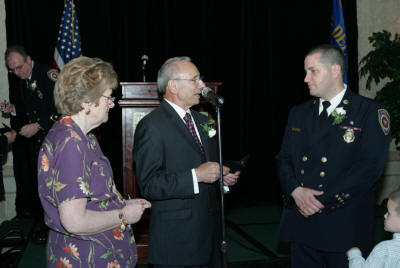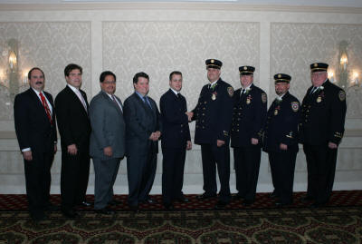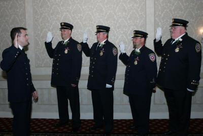 On May 12, 2007, the Lynbrook Fire Department held their Annual Installation and Dinner Dance at the Marriot in Uniondale. Lynbrook Mayor Brian Curran, a member of Hose Company, swore in Fire Chief Robert Occhipinti, First Assistant John O"Reilly, Second Assistant Kevin Bien, and Third Deputy Raymond Burke. Chief Occhipinti then swore in the officers for the six companies and the Floodlight Unit. Also at the dinner, immediate past Chief, Keith Festa, was presented with his late father's Ex-Chief's badge by former Lynbrook Mayor Eugene Scarpato and Keith's mom, Kathy. Former Mayor Scarpato was also presented his badge as an Honorary Fire Chief by Chief Occhipinti. Additionally Ex-Chief Duke Maffucci was honored for his 50 years of service and Captain Chris Kelly of Engine Company was honored as Firefighter of the Year for the rescue of a family on Horton Avenue in 2006. |