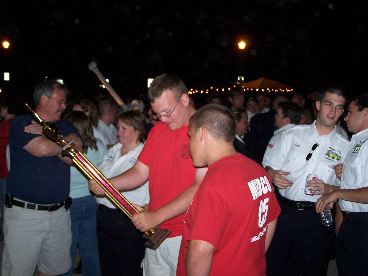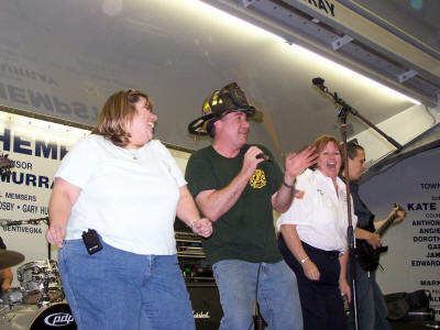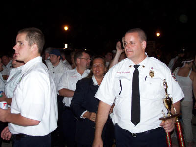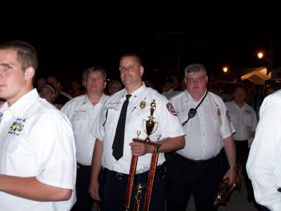 On Saturday, June 23rd, the volunteers of the Lynbrook Fire Department defended their first place win last year in the Fourth Battalion Parade, which was hosted this year by the East Rockaway FD. The Juniors successfully defended their first place position in the battalion, the band from Our Lady of Good Counsel finished third, and the Department finished second, behind the Rockville Center FD this year. Chief Robert Occhipinti accepted the trophies on behalf of the Department. Additionally, during the block party which was held in the parking lot next to the Fishery Restaurant, members of the Emergency Medical Company took to the stage and did some singing. |