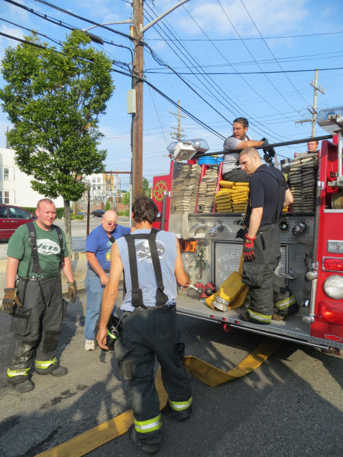 Fire At Abandoned Building Story & photos by Ex Captain Steven Grogan On Sunday afternoon at about 4:45 PM on August 11, 2013, the Lynbrook Fire Department, under the command of First Assistant Chief Michael Anderson, was dispatched to a report building fire at the closed and boarded-up Mangrove Feather Factory building on Broadway at Langdon Place. A passerby had reportedly seen smoke coming from an area behind the building. Engine Company was first on the scene and reported a rubbish fire against the back wall of the building under the fire escape. The fire was quickly extinguished with one line. The cause of the fire was suspicious and Chief Anderson requested an investigation by the Nassau County Fire Marshal.