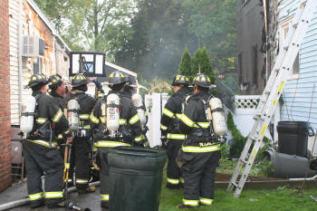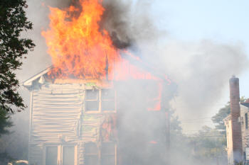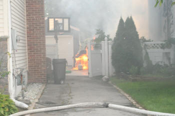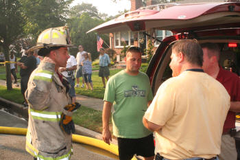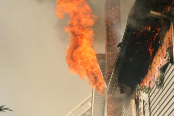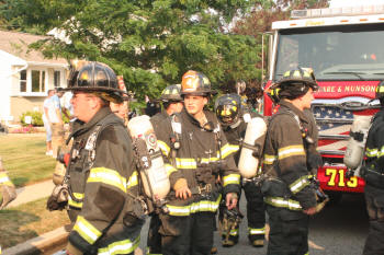 On Tuesday afternoon, August 18, 2009, the Lynbrook Fire Department, amongst other departments, was called out on a mutual aid to assist at a fire in Malverne. Third Deputy Chief Anthony DeCarlo responded as did Hose Company and our Emergency Medical Company to a Signal 10 house fire that was so fierce that it threatened nearby houses. The original call to the Malverne Fire Department at approximately 4:45 PM announced that the fire had extended to the neighboring house. It appeared later, based on Malverne police information, that the fire may have been started by youths smoking in the shed once attached to the burning house. The fire destroyed that shed and quickly spread up the wall and into the house and roof area. The next door neighbor’s siding melted and the propane barbecue grill also caught fire. The fire in the grille threatened three other nearby propane tanks. Five firefighters were injured fighting the fire. One Malverne firefighter broke his foot while on the roof and was transported by our Medical Company to Franklin Hospital Medical Center. Medical Company then transported a second firefighter suffering from heat exhaustion. Three other firefighters from mutual aid companies, not from Lynbrook, were treated at the scene and refused additional treatment. |