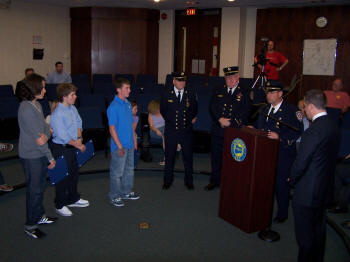 They then helped them from their burning home. At the meeting, Chief of Department, Kevin Bien, presented Citations to each of the youths and praised them for their actions. Lynbrook Mayor Brian Curran also presented Citations on behalf of the Village of Lynbrook to the youths as well.
