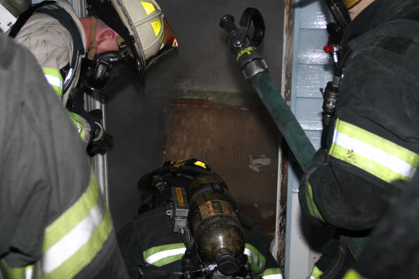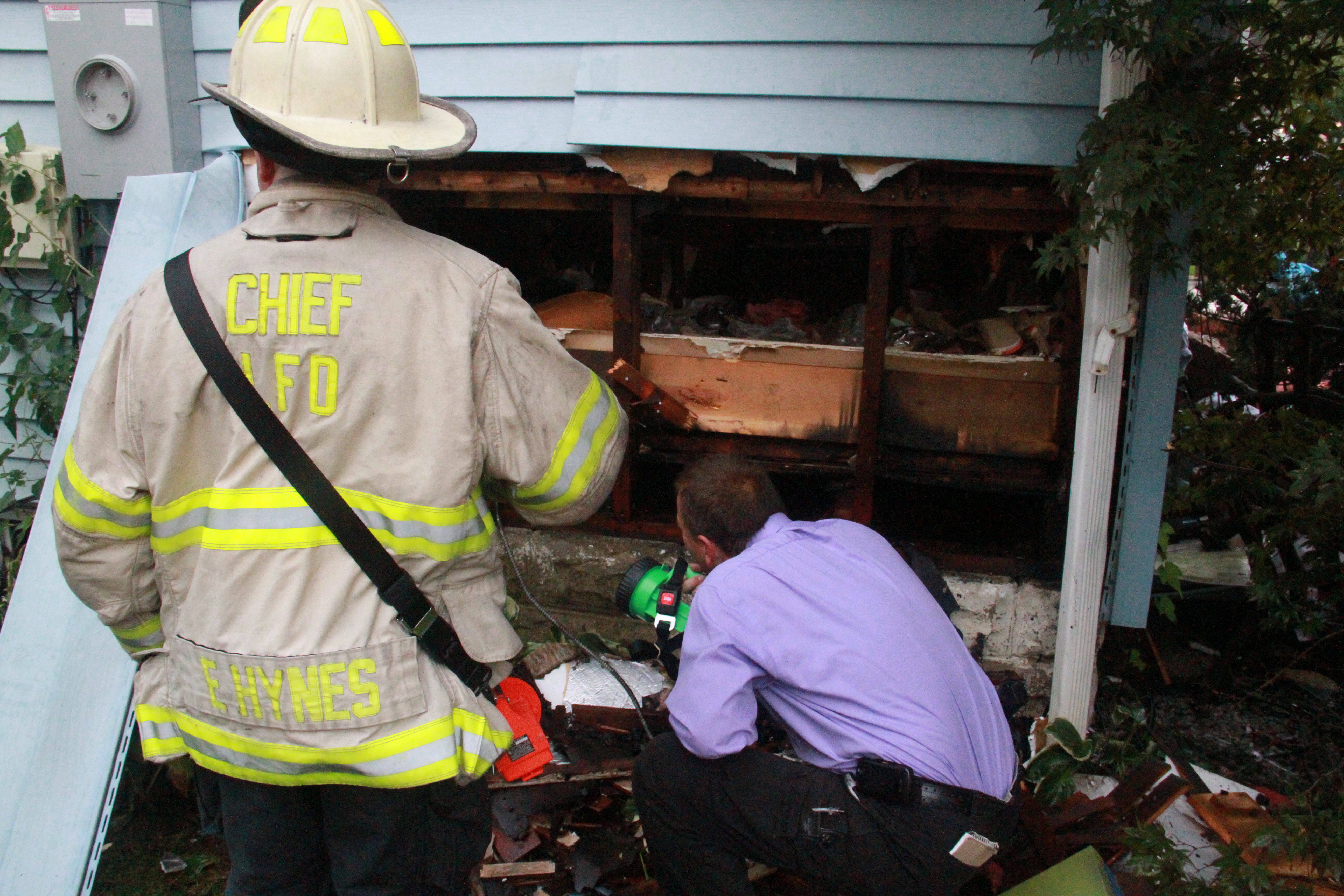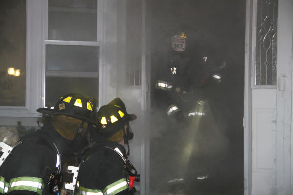 Chief Anthony DeCarlo arrived within minutes and broadcast "smoke showing" to the responding fire units as he pulled into the dead-end street. Other arriving assistant fire chiefs found a fire burning in the basement of the two story home. Chief DeCarlo then broadcast a "Signal 10," for a working fire. The occupants had escaped the burning house before firefighters arrived. Tally-Ho Engine Company 3 from Horton Avenue was first on the scene and dropped a hose line at the hydrant on Wright Avenue and laid hose down the block to the burning home. Tally-Ho was quickly followed by Truck Company which responded with both their ladder trucks. As Tally-Ho firefighters stretched a hose line from their engine to the side door of the house, Truck Company members took off the side door which was charred from the fire coming up the basement staircase. With the side door gone tremendous heat and smoke came up from the basement. In the meantime, Truck Company was putting their ladder up to the second story. Firefighters then moved the hose line down into the burning basement as the fire spread across the basement ceiling in the front half of the house. At times, with the heavy smoke condition which made visibility almost impossible, and due to the amount of items stored in the basement, firefighters found it difficult to maneuver the hose line and get at the main-body of fire. Truck Company helped the situation by taking out the windows to get the smoke out of the building and thereby help the firefighters fighting the fire inside. As more manpower arrived a second line was also taken from Tally-Ho as a back-up line to the side door. Additionally, another line was taken off Tally-Ho by Engine Company which had also arrived. Their line went into the front door and knocked down the fire that had spread up from the basement into the front and side walls. Firefighters had to remove the first floor living room wall to make sure the fire had not spread up to the second floor. Hose Company provided an additional hose line from the hydrant to Tally-Ho and also helped man the third line in the front door. With the fire burning, Chief DeCarlo requested mutual aid response from the neighboring fire departments. Ladders and engines from Rockville Centre, East Rockaway, Malverne, Lakeview and Valley Stream Fire Departments either came to the scene or stood-by at Lynbrook firehouses to cover any additional alarms. Those neighboring ladder companies assisted with the overhaul and gave relief to Lynbrook's firefighters. Other Lynbrook companies also assisted and backed-up hose lines. Lynbrook's Medical Company EMT's treated one Lynbrook firefighters who received an eye injury. The firefighter was transported to the hospital by the Lakeview FD ambulance. The fire was brought under control in about 45 minutes but firefighters were at the scene for another 90 minutes overhauling the walls and pulling burnt and damaged items from the house. The Nassau County Fire Marshal and the Arson Squad responded and conducted an investigation after the fire was extinguished. They determined the fire was not suspicious. Due to electrical wiring found in the area of the fire it may have been caused by an electrical problem. Chief DeCarlo said firefighters "did a great job at getting to the fire in the basement which is one of the most dangerous and most difficult to fight." He explained that those fires are difficult because the firefighters have to go down into the basement while the heat, smoke, and fire are rising. "The staircase is like a chimney pushing up that heat, smoke, and fire upward." he said. The Village of Lynbrook's Building Department was also on the scene to inspect the fire damage to the basement rafters and first floor flooring. |