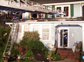 On Tuesday evening September 9, 2008, the residents of 67 Edmund Street in Lynbrook left their house allegedly with candles burning upstairs in a second floor bedroom. When they returned later they saw a burning glow and flames in that same upstairs bedroom. Their house was on fire. At 10:10 PM, the Lynbrook Fire Department, under the command of Chief John O’Reilly, was dispatched to the scene. Upon arrival, Chief O’Reilly broadcast a “Signal 10” for a working fire at the house. Vulcan Company was first on the scene and took the hydrant two doors away from the burning house. They immediately stretched two attack hose lines to the front of the house and took one of the lines into the house. Engine Company, and Tally-Ho Company, which had also arrived, assisted by taking the second hose line. Truck Company responded with both ladder trucks setting both ladders to the roof area and ventilating the second floor. Hose Company and the Emergency Medical Company stood-by. Vulcan Company took the hose line up the stairs to the second floor where they were met with heavy smoke and flames coming from the fully involved bedroom. They quickly moved into the burning room and attacked the fire. The fire was contained to that one bedroom and the ceiling above. It was brought under control in about 15 minutes but firefighters were at the scene for over an hour putting out additional pockets of fire in the bedroom walls and ceiling area. At the request of Chief Reilly, the Rockville Centre Fire Department sent a FAST team and ambulance to the scene while the East Rockaway Fire Department sent a ladder, and the Lakeview Fire Department sent an engine, to stand-by to cover additional Lynbrook alarms. No firefighters were injured fighting the fire. |