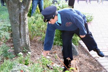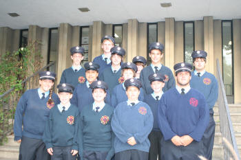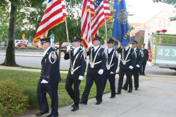 while members of the Junior Fire Department stood at attention at