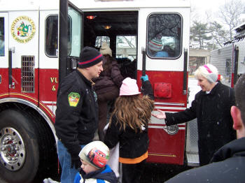 Under snowy skies and bitter cold temperatures, the volunteers of the Lynbrook Fire Department, under the command of Chief Kevin Bien, held their Annual Christmas Fire Truck Rides from the Earle Avenue parking field on Saturday, December 19, 2009. The children of Lynbrook got a chance to ride on Lynbrook's fire vehicles from noon to 3 PM that day and also got a chance to meet with Santa Claus in Truck Company's firehouse on Earle Avenue. Lynbrook volunteers have been holding this annual Christmas event since the 1950's. The chairman of this year's rides was Garrett Gulliksen of Truck Company. Chief Bien, on behalf of all the volunteers, offers his best wishes to the residents of Lynbrook for a Merry Christmas, a Happy New Year, and a fire safe year. |
