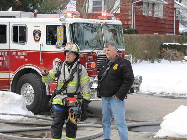 On Super Bowl Sunday, February 1, 2015, the Lynbrook Fire Department, under the command of First Assistant Chief James McDermott, was called on a mutual aid to assist the East Rockaway Fire Department at a Signal 10 house fire at 48 Grant Avenue in East Rockaway. Lynbrook's Truck Company and the Emergency Medical Company responded to the scene to assist. Second Assistant Chief John Chavatte also responded. East Rockaway responded to a fire at that location at about 12:17 PM. It appeared that a fire in the fireplace had extended into the side wall of the home. Firefighters removed the wall to get at the fire. Oceanside and Lakeview Fire Departments were also at the scene. Lynbrook firefighters were there for over an hour.