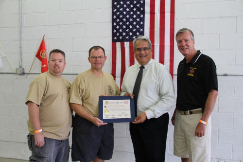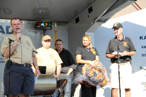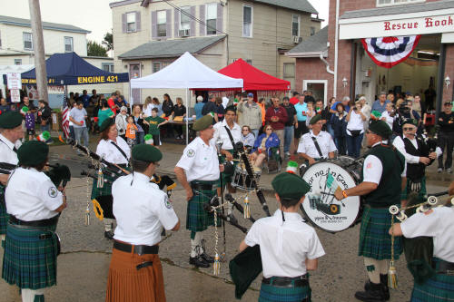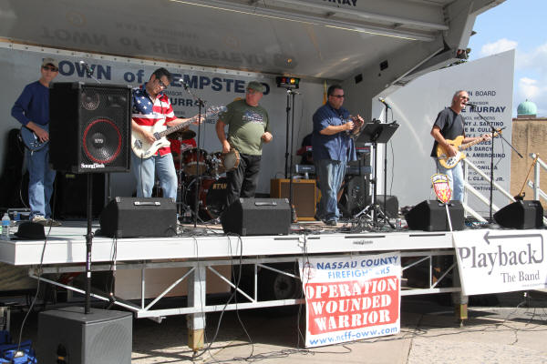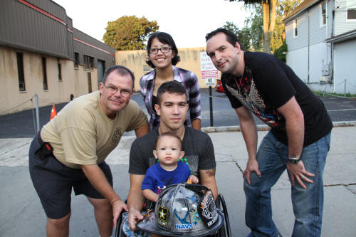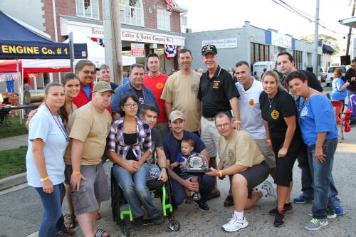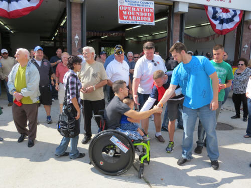 Lynbrook Hosts Wounded Warrior Fundraiser Story by Ex Capt. Steven Grogan - photos by Steven Grogan & Lt. Brian Grogan On Sunday, September 30, 2012, the Lynbrook Fire Department hosted its second annual block party to benefit the Nassau County Firefighters Operation Wounded Warrior. This year's event called Community Concert for the Troops was held again in front of Truck Company's quarters on a closed Earle Avenue. The department's special guest was wounded US Marine Marcos Dandrea, his wife Victoria, also a Marine, and their 14 month old son, Micah. The bands Playback, Jimmy Kenny and the Pirate Beach Band, and the Glor Na nGael Pipes and Drums donated their time and played that day. Additionally, our own Clayton Murphy of Vulcan Company, designed a Military and Wounded Warrior Appreciation Helmet which was one of the numerous donated raffle prizes. That prize was won by Ex-Chief Kevin Bien, the chairman of the block party. He then turned and gave the helmet to Dandrea. Also that day, former Navy Corpsman Micah Ambrose who now lives in Floral Park, and who saved Dandrea's life on a hilltop in Afghanistan 18 months ago when he stepped on IED, came to spend some time at Truck Company with the Marine he saved. the Marine named his son after the Navy Corpsman. That day, according to Chris Hynes of Engine Company, 61 persons, groups, and organizations donated prizes, and services, to help make the day a success which will help to improve the lives of our wounded warriors. Many people and organizations supported Lynbrook's efforts and they all deserve our thanks. Chief Bien has estimated that over $12,000 was raised that day for Nassau County Firefighters Operation Wounded Warrior. |