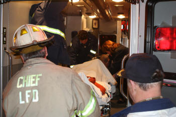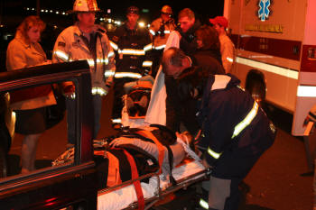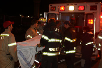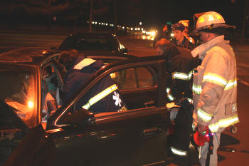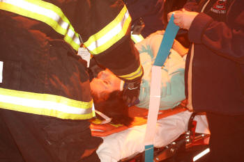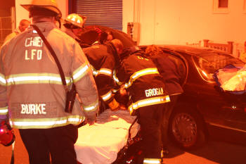 After a busy afternoon for our Lynbrook FD volunteers on December 29, 2008, the Emergency Medical Company and the Department's Extrication Team responded at about 6:30 PM to a reported auto accident at the intersection of Merrick Road and Ocean Avenue. Both fire units, under the direction of Chief John O'Reilly, and working together, removed two injured occupants from one car. They were placed on stretchers and transported in Unit 425 to South Nassau Community Hospital. |