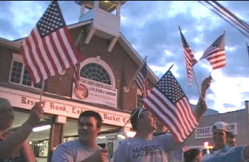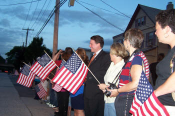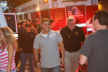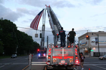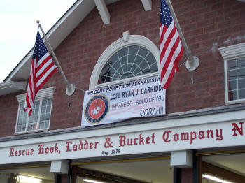 On the trip back to Lynbrook, they drove under a arch and American flag formed by ladders from the Rockville Centre and Malverne Fire Departments. They drove under a second arch and flag, formed by ladders from Stewart Manor F.D. and Lynbrook's 428, at the intersection of Sunrise Highway and Earle Avenue. As Ryan arrived on Earle Avenue sirens and horns were blown on Lynbrook's engines which lined Earle Avenue as Truck Company members and Lynbrook firefighters lined the street near the firehouse with American flags. Truck Company then held an open house for Ryan, his family, friends, firefighters, and guests. Lynbrook Mayor Brian Curran, Trustees William Hendrick and Hilary Becker, and County Legislator Fran Becker, were also in attendance.