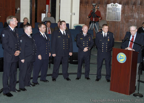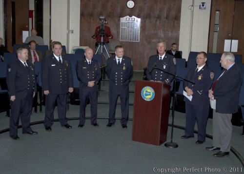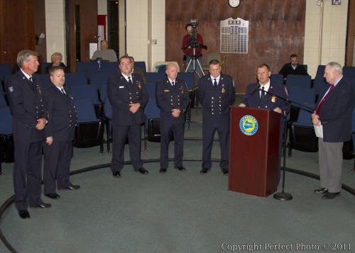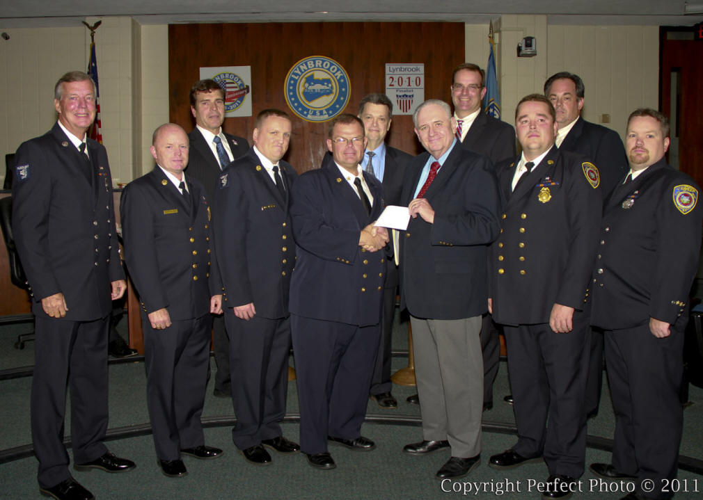 At the October 3, 2011, Lynbrook Village Board meeting, the Lynbrook Chamber of Commerce presented a $1500 check to the Lynbrook Fire Department for the Nassau County Firefighters-Operation Wounded Warrior program. The chamber raised the money at their last chamber car show in September. Ex-Chief Kevin Bien, chairman of Lynbrook's End of Summer Block Party and Salute to our Heroes, which raised over $10,000 for Operation Wounded Warrior accepted the additional check from William Gaylor, president of the Chamber. Also, this writer asked that Lynbrook school children write Christmas and holiday cards and letters to our wounded soldiers and Lynbrook firefighters will distribute them personally to the soldiers on December 9th. On that day, Lynbrook firefighters will travel with other Nassau County firefighters to Walter Reed/Bethesda Hospital to distribute Chrismas gifts purchased with monies raised at Lynbrook's fundraiser and other fundraisers held by other Nassau departments over the past year. The cards will be given with the gifts. School children were asked to put their name, grade and school on the card or letter. They can be dropped off at Lynbrook Village Hall during normal business hours or at fire headquaters on Wright Avenue on Sunday mornings. The deadline to drop the cards off is December 1st.