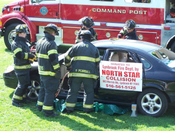 Lynbrook FD Demos at Annual Expo Story & photos by Ex Captain Steven Grogan Members of the Lynbrook Fire Department took part in the annual village Expo at Greis Park on Saturday, September 25, 2010. While the Fire Prevention Bureau used Elmont FD's smoke house to instruct youngsters on the proper procedure for escaping a fire in the home, members of the Extrication Team, using a vehicle donated by North Star Collision, demonstrated the use of its forcible entry and cutting equipment to remove doors and the roof from the vehicle. Additionally, Tally-Ho members demonstrated the use of the FFRED pack system from the Firefighter's Arch. Also, the members of Hose Company extingished a car that was set on fire in Wilcox Alley, and the Medical Company was at the park displaying their equipment and attempting to sign up new members.