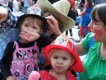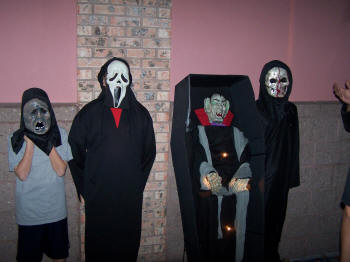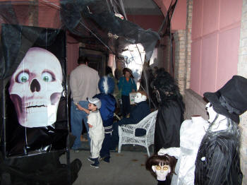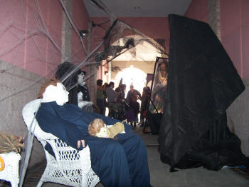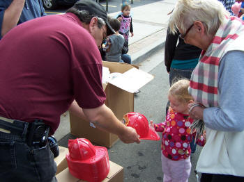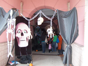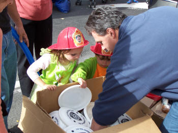 The Lynbrook Fire Department participated in the program. The walkway from the Forest Avenue parking lot to Atlantic Avenue was decorated by Medical Company’s Lynn Curtis, and members of our Junior Fire Department dressed in costumes to scare the children that walked through the walkway to the street. The walkway was made even scarier by the use of the department’s smoke machine. Additionally, the Floodlight Unit was on scene and Floodlight Captain Jim Hillgardner helped Fire Prevention Director Mike Kenny hand out plastic fire helmets and Frisbees to the children on the street. Earlier, Hose Company led the Halloween parade of the children. |