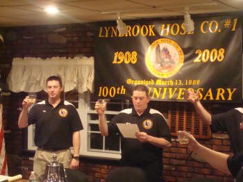 Those thirteen men that day, including Post were, William “Billy” Karn, who is believed to be the original organizer for forming this new fire company, and Hugo Cook, Henry P. Schweitzer, William Cochran, Peter Kischoff, John Hiller, William Conway, Frank Whelden, Steve Dolbeer, John Torrence, Charles Potts, and Charles Fox. At that first meeting the group of charter members proposed naming the new fire company, Lynbrook Hose Company No. 1, and appointed Andrew Post as it first “Forman,” now referred to as a Captain. After that meeting the members filed incorporation papers with the State of New York, and on Friday, March 13, 1908, Hose Company No. 1 of the Lynbrook Fire Department was officially a fire company through the efforts and dedication of those 13 men. After all the formalities of this new organization were established, the next task was to obtain a piece of fire apparatus for the men to use to fight fires. Back then volunteer firefighters pulled a four wheeled cart with hose to a fire scene. A committee was next appointed and a search was begun to locate a used piece of fire equipment. The members located a “high, four-wheeled jumper” hose wagon which was for sale from the Rockville Centre Alerts Fire Company, which had just purchased a new one. The “jumper” as it was called, was also known as a “giraffe” and originally saw service in Flatbush, Brooklyn. The Hose Company members purchased the “jumper” for $25. When it arrived in Lynbrook, and without having a firehouse, it was stored in the barn of member John Torrence on Noble Street, just west of Hempstead Avenue. The Hose Company volunteers were soon pulling their “jumper” to the borders of East Rockaway, Rockville Centre, Franklin Square, and Valley Stream, to fight fires. With now only having a barn for the “jumper,” and no other room, the new fire company held their meetings in the firehouse belonging to Rescue, Hook and Ladder Company No. 1, on Earle Avenue, Lynbrook’s first fire company. Hook and Ladder charged Hose Company $1 per meeting to use their firehouse. In 1911, Steve Dolbeer, one of the original 13 charter members that helped form the new company, was elected and served as Fire Chief of the Lynbrook Fire Department for two years. The Lynbrook Fire Department consisted that time of only three companies, Hook and Ladder No. 1, Engine Company No. 1, and Hose Company No. 1. The Hose Company members next held dances, fairs, and other entertainment to help raise the needed funds to build their own firehouse. The monies raised from the growing community were used to purchase two empty lots on Blake Avenue, behind the Lynbrook movie theater. In 1912, the same year that the Village of Lynbrook was incorporated, Hose Company moved into its new firehouse and it is still being used today by the fire company. In 1917, the company received its second piece of fire apparatus and the first factory built equipment, which was then followed by a replacement in 1926 with a new hose truck. Twenty years later in 1946, that hose truck was replaced with a triple combination 750 gallon fire pumper. In August 1967, Hose Company received the Lynbrook Fire Department’s first diesel powered fire engine. The company now responds from their Blake Avenue firehouse with a 1,500 gallon pumper which was purchased by the village in 1992. On the evening of March 13, 2008, the present volunteer members of Hose Company celebrated the company’s official 100 years of service to the Village of Lynbrook with a special meeting in which all former Hose Company volunteers were invited to attend. At this meeting the original minutes and original records of the forming of the fire company were read. They also honored the memory of the 13 community minded residents who worked together to organize the company. Although the company was officially incorporated on Friday, the 13th, there is nothing superstitious about the dedication and commitment that Hose Company volunteers have made to our community for the past 100 years. |