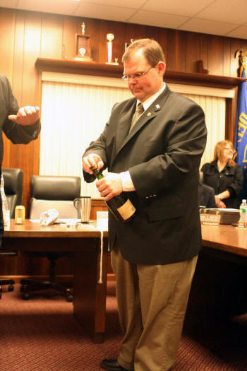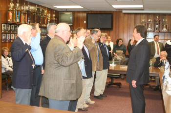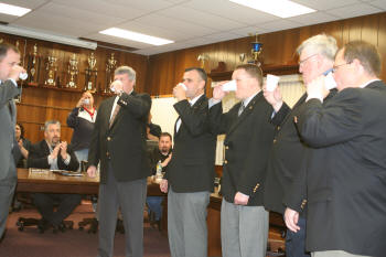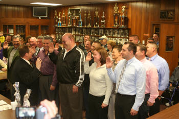 officers while Village Administrator John Giordano swore in the
