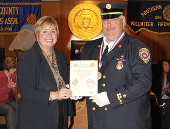 On October 22, 2009, the Town of Hempstead presented their annual fire awards to a member of each fire department within the Town of Hempstead. Ex-Chief John Obanhein of Hose Company was Lynbrook's honoree. He was honored by Hempstead Town Supervisor Kate Murray and the rest of the Town Council for his actions on October 16, 2008, when while driving in Valley Stream saw the outside of a house on fire. He stopped and was able to extinguish the fire. The homeowner was in the house at the time but was recuperating from knee surgery and unaware that the house was on fire. In a letter from the homeowner to the Lynbrook Fire Department he stated that Ex-Chief Obanhein while driving past his house "when he observed an area of siding by our front door that was on fire. He immediately started extinguishing the fire and stopped a situation that could have turned very tragic. I would like to once again express how much we appreciate his actions and thank him for his service to the community." Chief Kevin Bien, his deputy chiefs, and members of Hose Company, attended the awards ceremony for Ex-Chief Obanhein. Additionally, Obanhein was previously honored by the Lynbrook Village Board on December 1, 2008. |