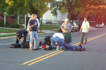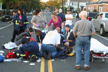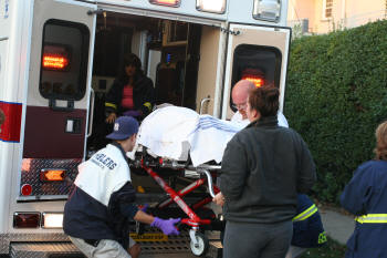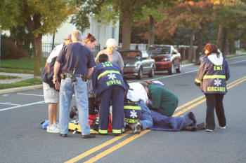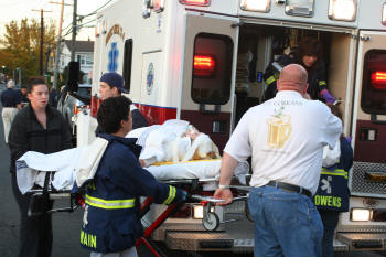 On October 15, 2008, at approximately 4:40 PM, the Lynbrook Fire Department's Emergency Medical Company was dispatched to a "pedestrian struck" on Hempstead Avenue in front of the Knights of Columbus Hall. The pedestrian, a woman senior citizen, was immediately assisted by passersby and arriving Lynbrook police officers until EMT's from the Medical Company arrived on the scene and stabilized the woman. She was then transported in the new 425A to the hospital. |