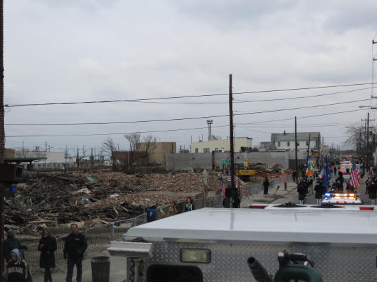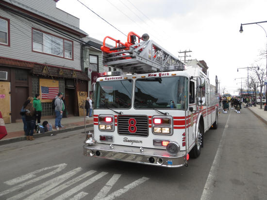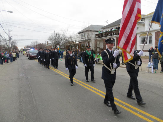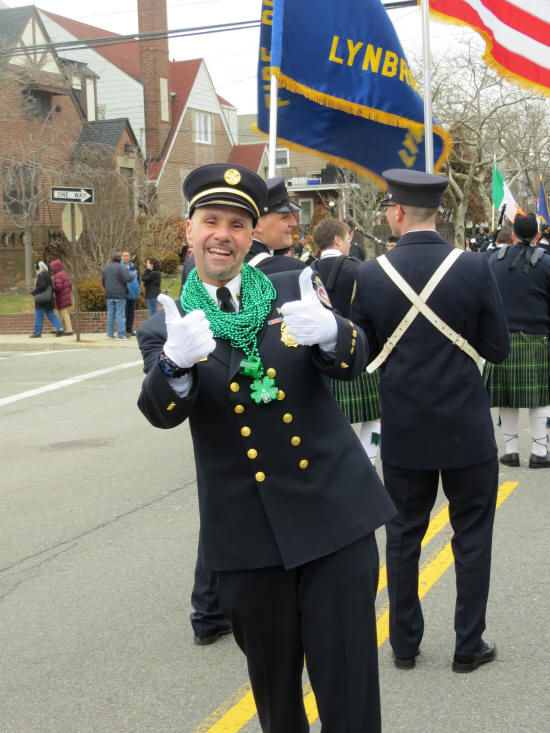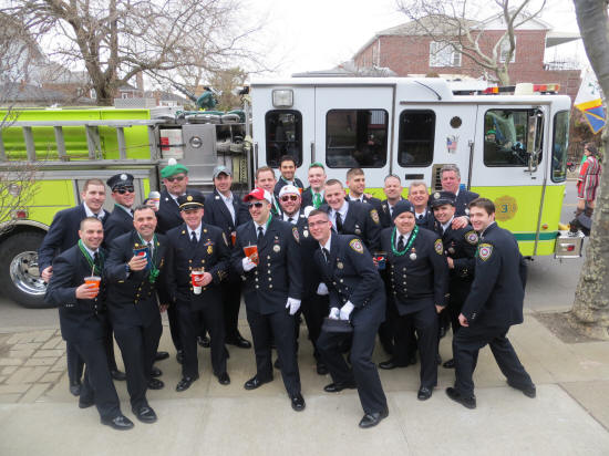 LFD Parades in the Rockaways Story by Ex-Captain Steve Grogan; Photos by LT. Brian Grogan On Saturday, March 2, 2013, members of the Lynbrook Fire Department, led by Chief Anthony DeCarlo, marched in the annual St Patrick's Day parade in the Rockaways. Members used Truck Company's ladder 428 and Tally-Ho's engine 423 in the parade. During the parade the members passed PJ Curran's Bar which is owned by the family of one of the members and which was destroyed in Hurricane Sandy. The members had a great time as usual. |