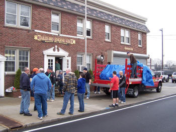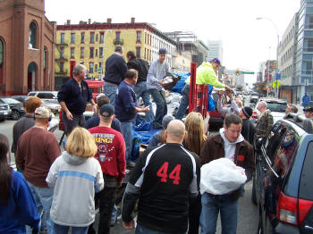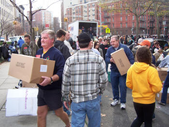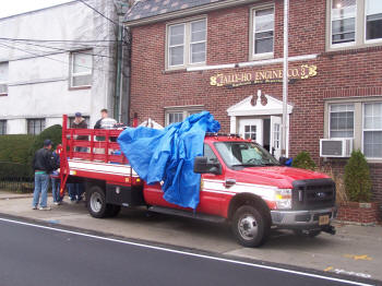 This is the third year that the Tally-Ho members as a group have done this on Thanksgiving morning. Tally-Ho supplied the largest amount of turkeys to this effort which is organized by a nun from the local Catholic Church. The members also made additional food donations to Sister Barbara at Our Lady of Peace for distribution for local families in need. The story of Tally-Ho’s Thanksgiving efforts was written about in the November 2009 edition of the FASNY magazine, The Volunteer Firefighter. A copy of that article was even posted on FDNY’s 40 Truck firehouse door which is opposite the food distribution location. |
