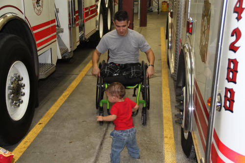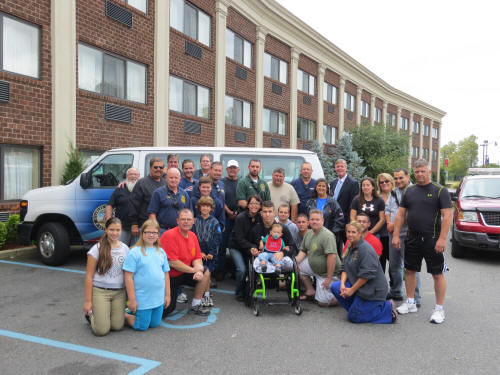 On Saturday, September 29, 2012, wounded US Marine Corporal Marcus Dandrea, his wife Victoria, also a Marine, and the youngest of their three children, arrived in Lynbrook from Walter Reed National Medical Center at Bethesda, MD, for a weekend in Lynbrook thanks to the efforts of Lynbrook firefighters who support Nassau County Firefighters Operation Wounded Warrior. The Marine and his family got to Lynbrook with the help of the people from the Disabled Veterans Association which is headquartered in Lynbrook and who sent drivers and a bus to Bethesda to pick them up.