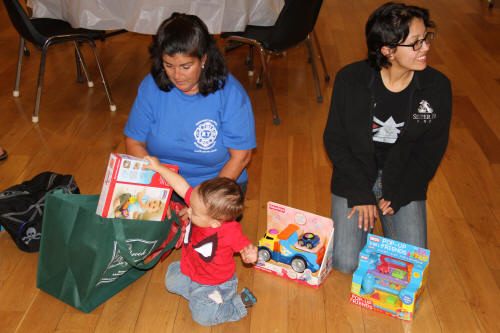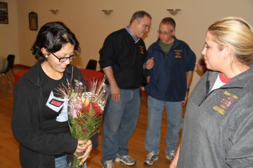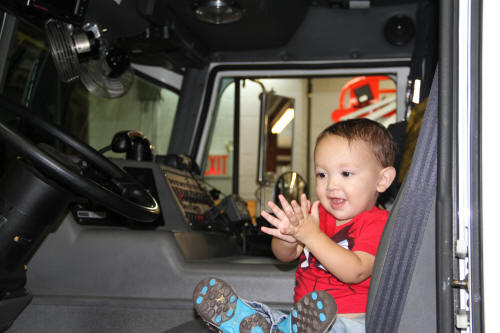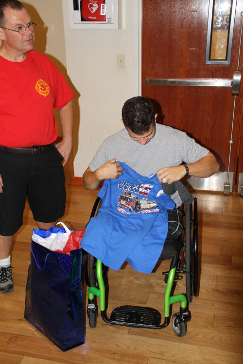 That night the chiefs of the department and a few committee members took the family to dinner at McQuade's Restaurant on Merrick Road. Owner Jimmy McQuade got a chance to meet and greet the Marine and his family picked up the bill. After dinner everyone went back to Truck Company for coffee and cake. There Marcus was given a number of fire shirts and Operation Wounded Warrior clothing. Victoria also received clothing and flowers donated by Freyhammer Florist. And, fourteen month old Micah, was given toys provided by Lynbrook Chamber of Commerce members Stu Miller of Miller's Hardware and Bill Gaylor of Halmark Card store. |